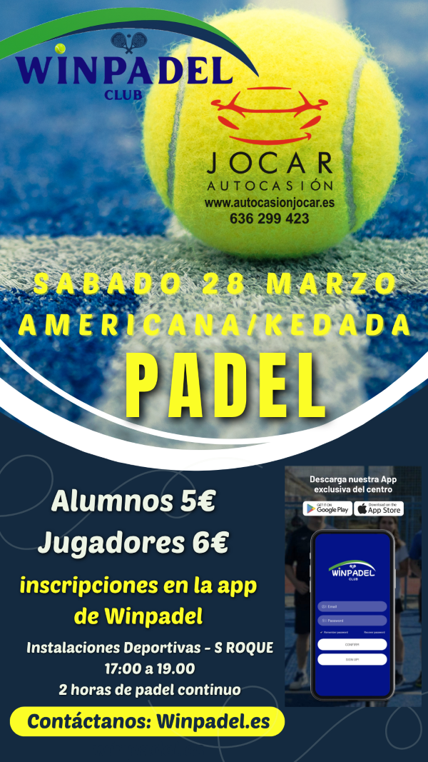 kEDADA SABADO 28 - TARDES DE PADEL DE 17 A 19:00 HORAS EN LAS PISTAS DE SAN ROQUE